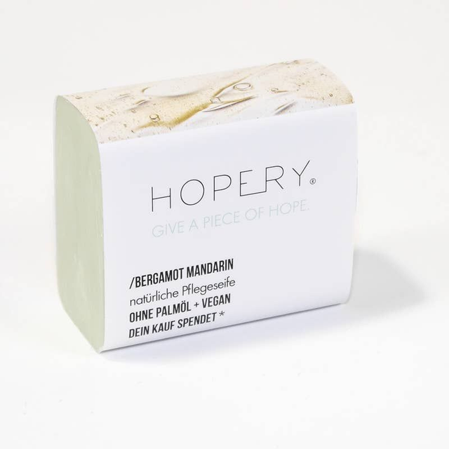 Usa el jabón HOPERY sin aceite de palma como un jabón de manos con suave espuma o en su bolsita de algodón para una limpieza corporal especialmente suave en la ducha.