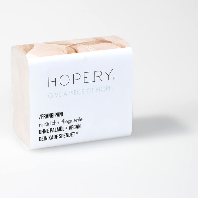 Usa el jabón HOPERY sin aceite de palma como un jabón de manos con suave espuma o en su bolsita de algodón para una limpieza corporal especialmente suave en la ducha.
