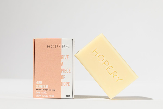 Usa el jabón HOPERY sin aceite de palma como un jabón de manos con suave espuma o en la bolsita de algodón HOPERY para una limpieza corporal especialmente suave en la ducha.