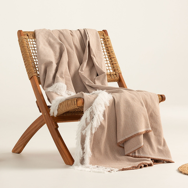 Plaid multiusos diseño geométrico. 60% algodón, 40% poliéster. Fabricado en España