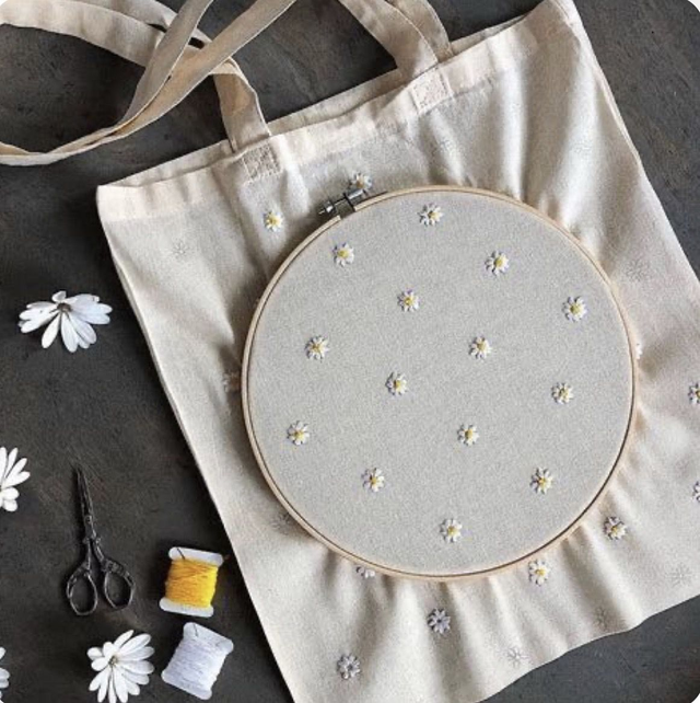 Decora tu tote bag de algodón usando técnicas basicas de bordado.